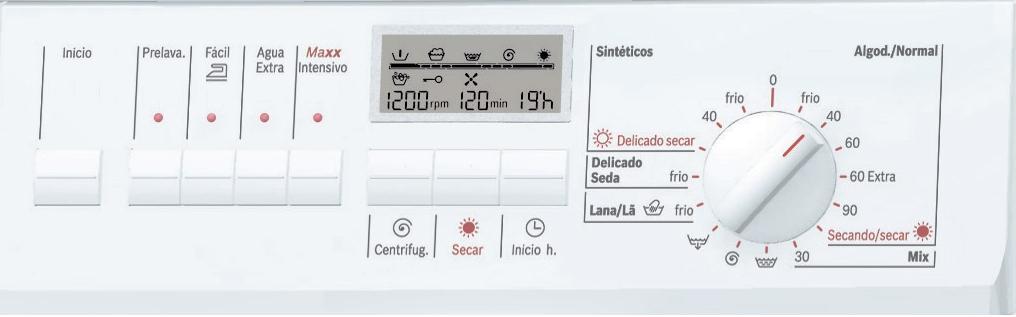- Tecla adiar centrifugação: Evita a formação de rugas e odores quando as roupas forem estendidas logo após a lavagem. Esta tecla adia o último enxágüe e a centrifugação.