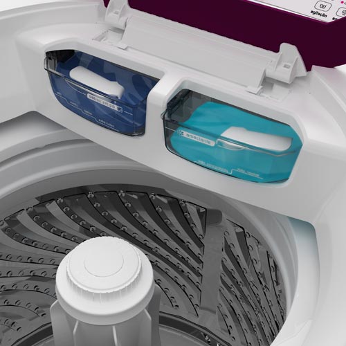 - Quatro níveis de água: Com quatro níveis de água você pode escolher o mais ideal para a quantidade de roupas e orientar-se através das marcações do dispenser para a dosagem necessária de sabão em pó, líquido ou concentrado para cada lavagem.