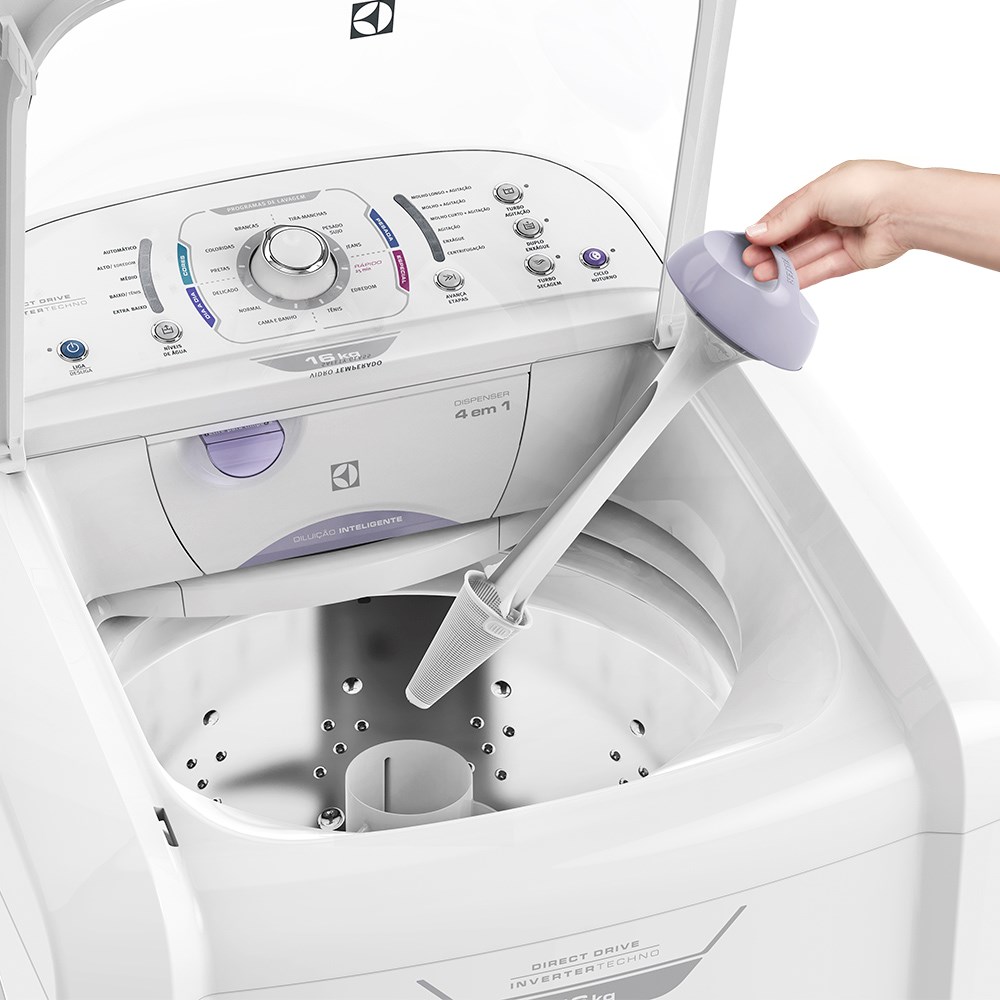 - Motor Inverter Direct Drive: elimina o uso da correia e da polia, ligando o motor diretamente ao cesto. Isso permite que se ofereça uma garantia de 10 anos no motor, trazendo maior confiança, durabilidade e segurança.