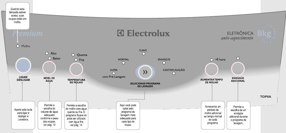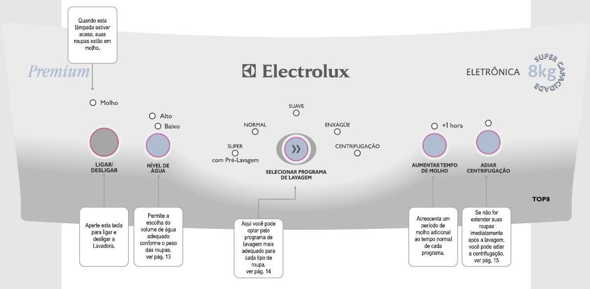 - Tecla adiar centrifugação: a máquina mantém as roupas na água limpa, evitando rugas e mau cheiro.