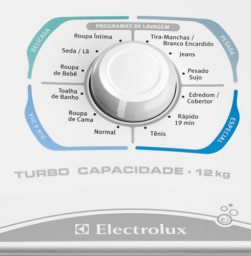 - 12 Programas de Lavagem: Especialmente desenvolvidos para lavar adequadamente todos os tipos de roupas e sujeiras.