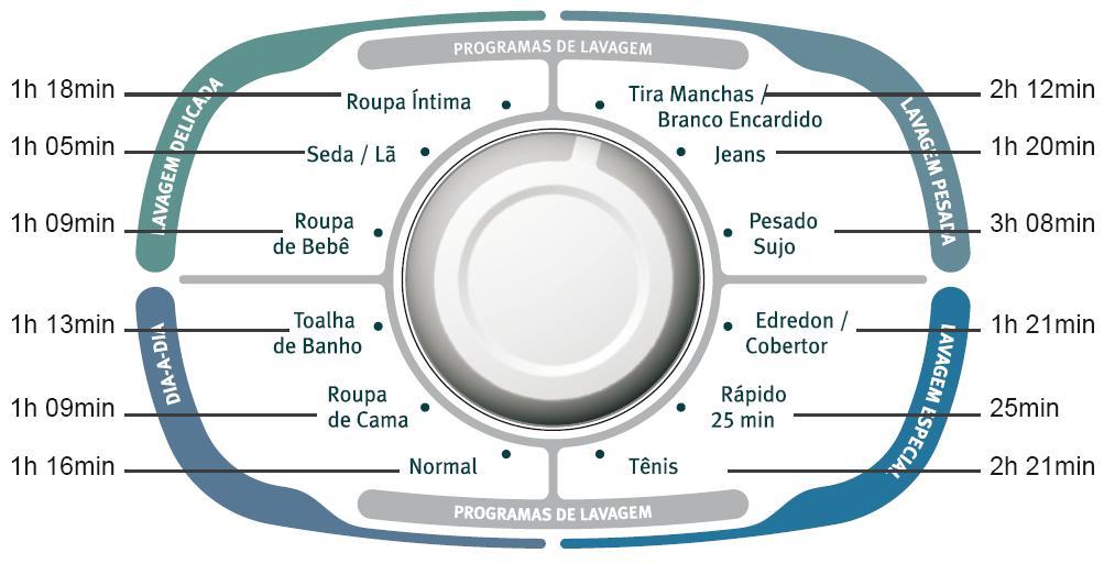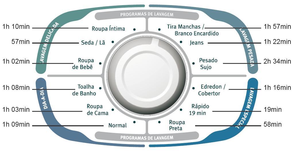 - Programa Rápido 19 minutos: o mais rápido do mercado. Ideal para roupas pouco sujas.