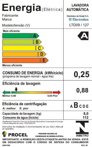 - Consumo de água por quilo de roupa lavada: 11,9 litros