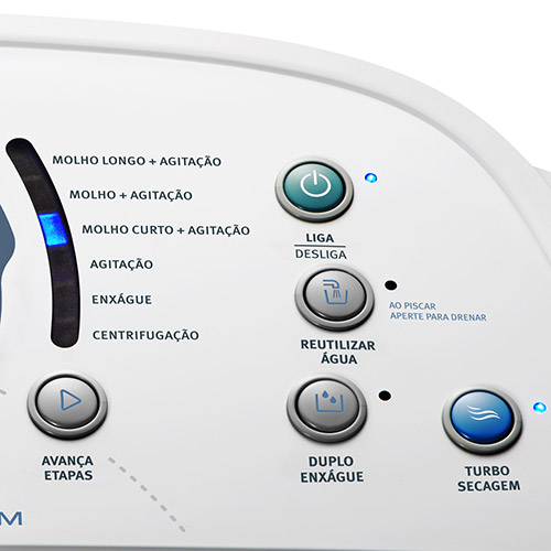 - Turbo Agitação: Lavagem mais potente para roupas mais sujas e pesadas.